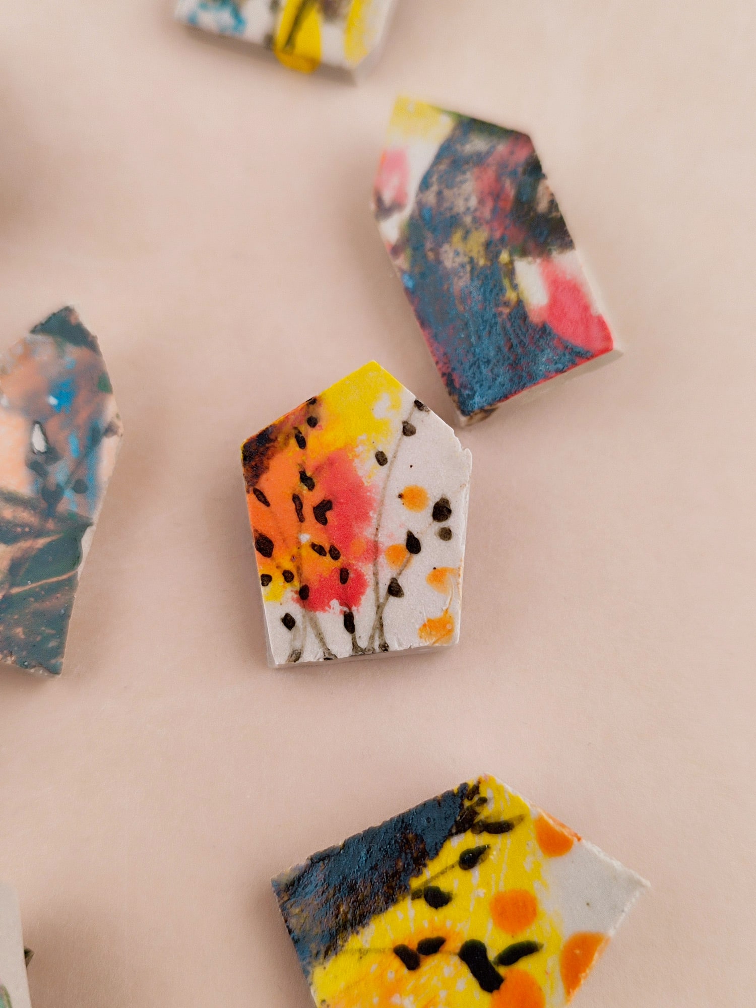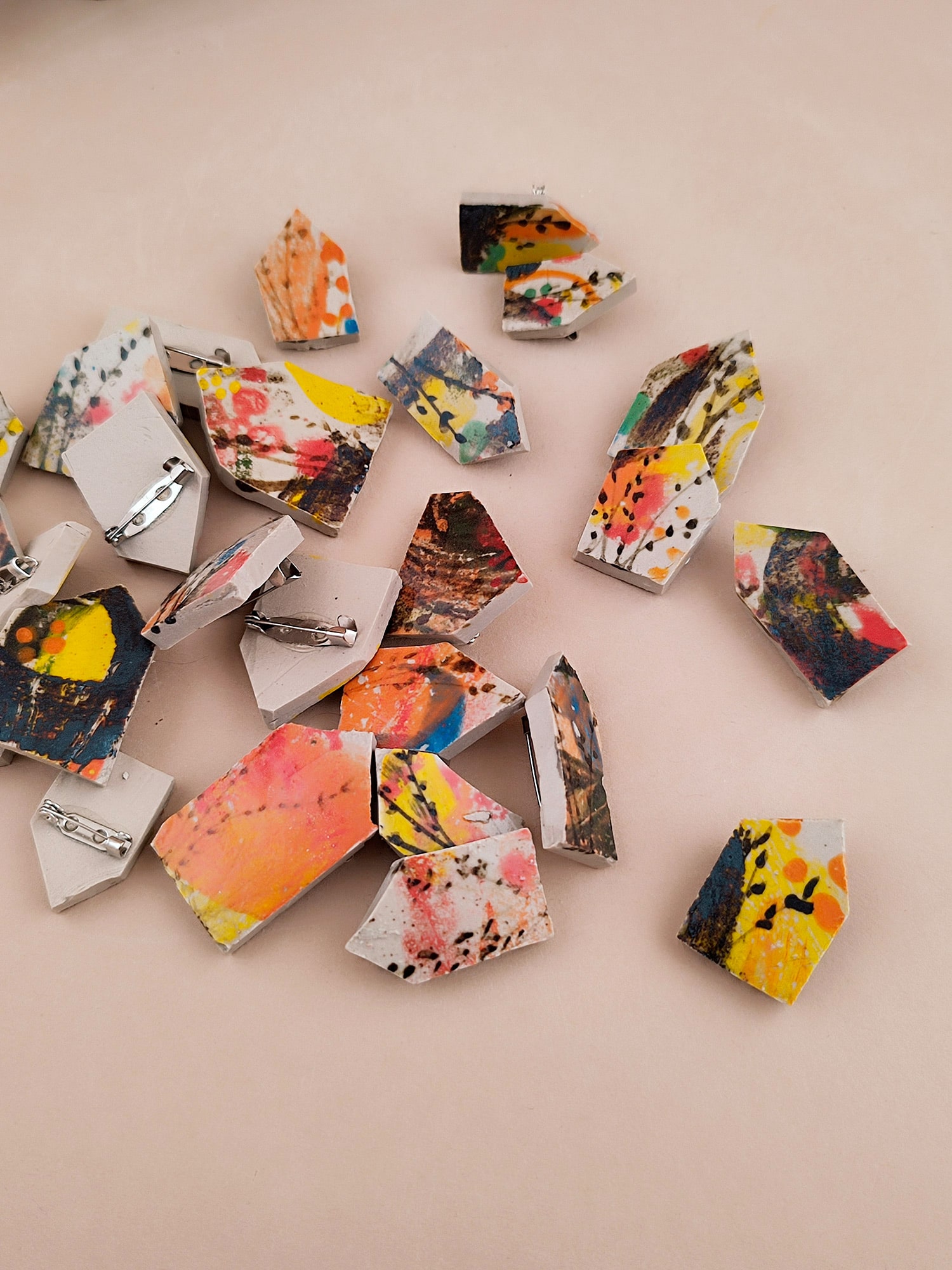 Chaque boucle et chaque broche est façonnée comme une mini peinture à porter.