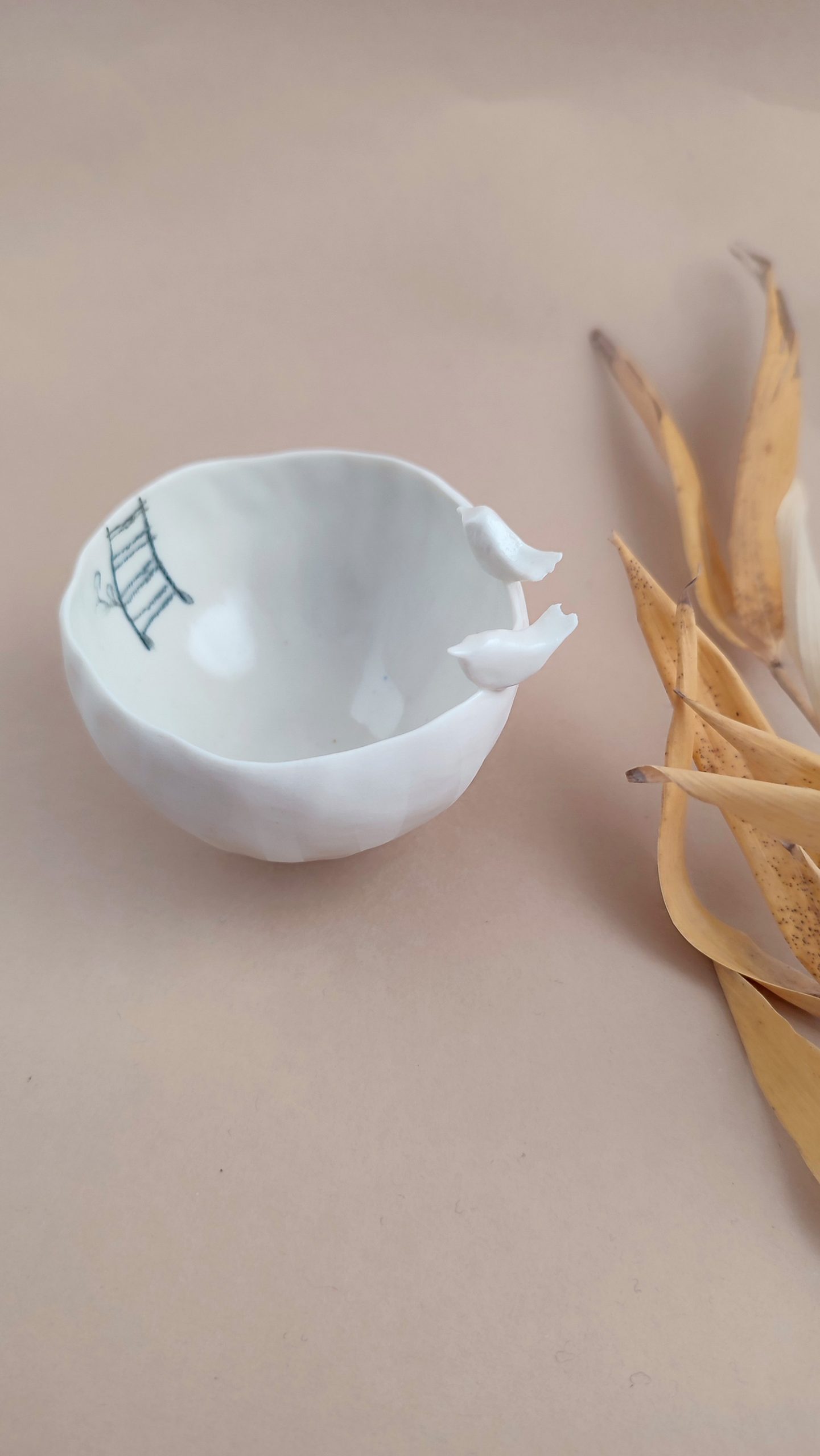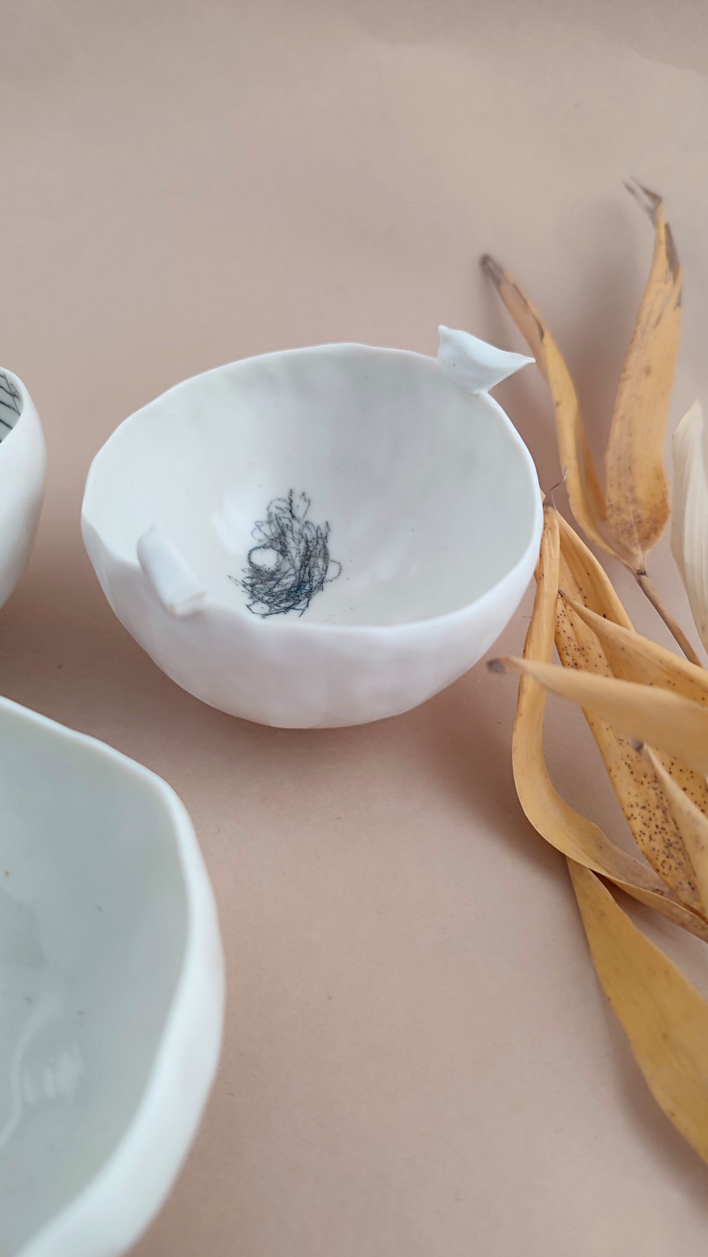 Ces coupelles et vide-poches en porcelaine sont pensés comme de délicats compagnons du quotidien :accueillir un bijou, une épice, un sachet de thé, ou simplement apporter une touche poétique à votre intérieur.